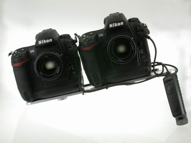Camera systems mounted together to both trigger simultaneously.